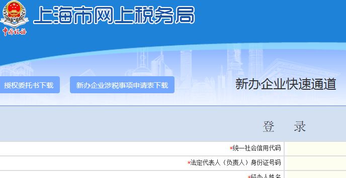 (2)具体经过:先通过上海税务官网新办企业快速通道(下图),做相关信息录入,录入提交完成后,一般次日会收到税务局短信,按短信提示去对应税务大厅领取核税结果,开通U棒网上办税功能,部分区还要去税务专管员那报道,做进一步核实。